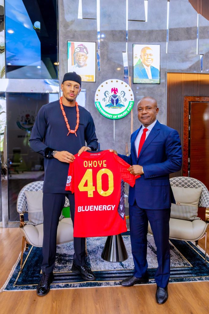 Enugu, Nigeria – Governor Peter Ndubuisi Mbah welcomed Super Eagles and Udinese goalkeeper Maduka Okoye to the Lion Building, celebrating the achievements of a true son of Enugu. Okoye, a rising star on both national and international stages, shared his ambitious plans to give back to his community through a charitable foundation and a football academy in Enugu.